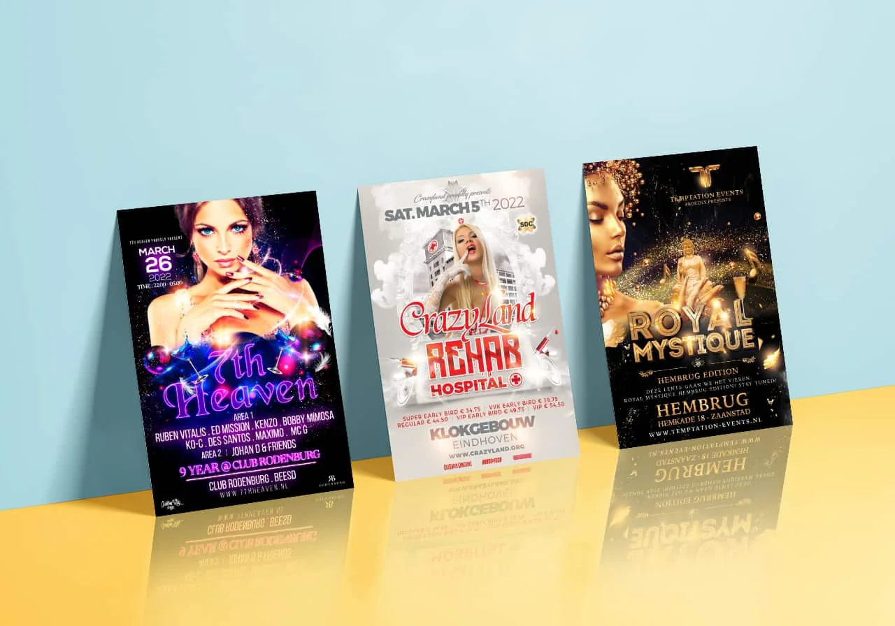 Van Flyers, Posters, Hekwerk banners, Social media promotie, Artwork animatie, Videos en nog veel meer.
